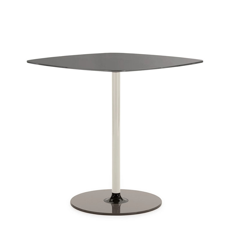 ガラストップは角の取れたスクエア形状、それを支える一本のメタルレッグはシンプルそのものです。