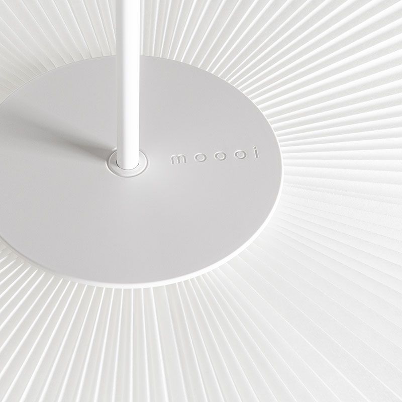 シェードを折りたたむと、光源が現れ、下向きの光が射し込みます。 シェードを下に広げると、光の強さや方向が変わり、やわらかく拡散します。