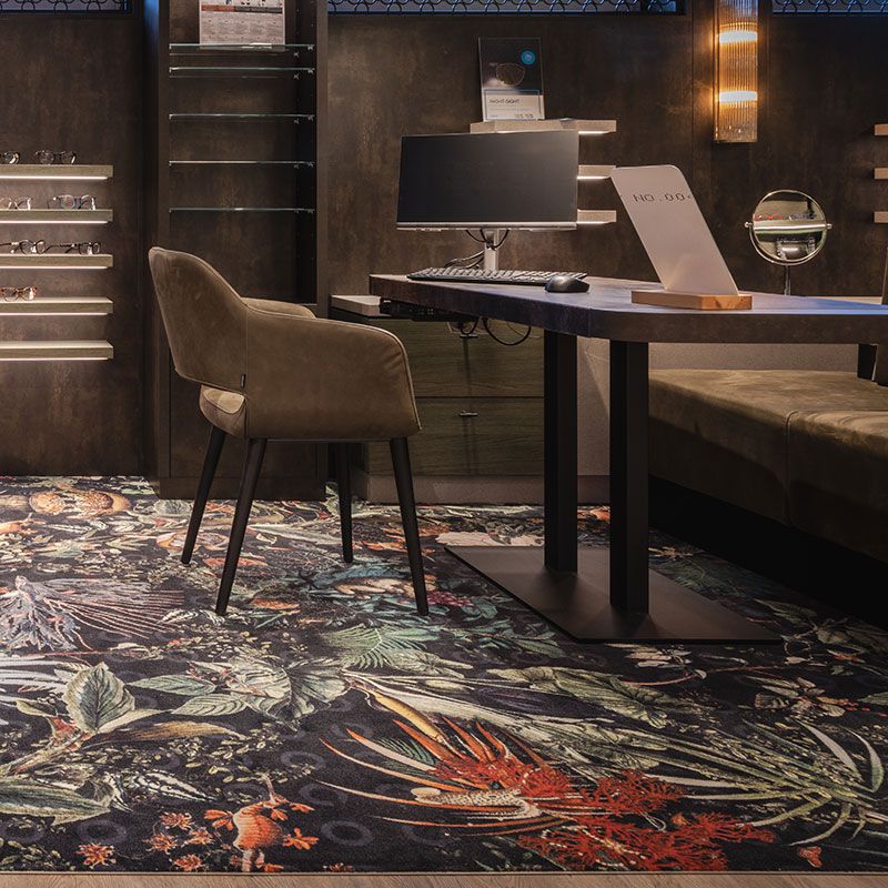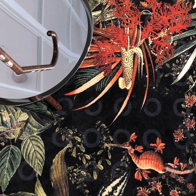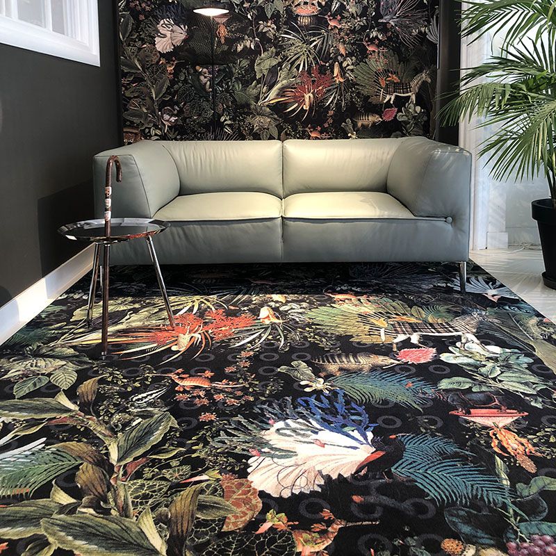 ソフトな手触りのテキスタイルにデジタルプリントされた幻想的な動物柄のカーペットです。