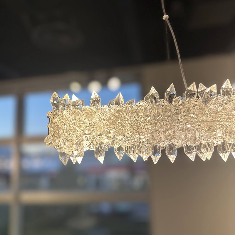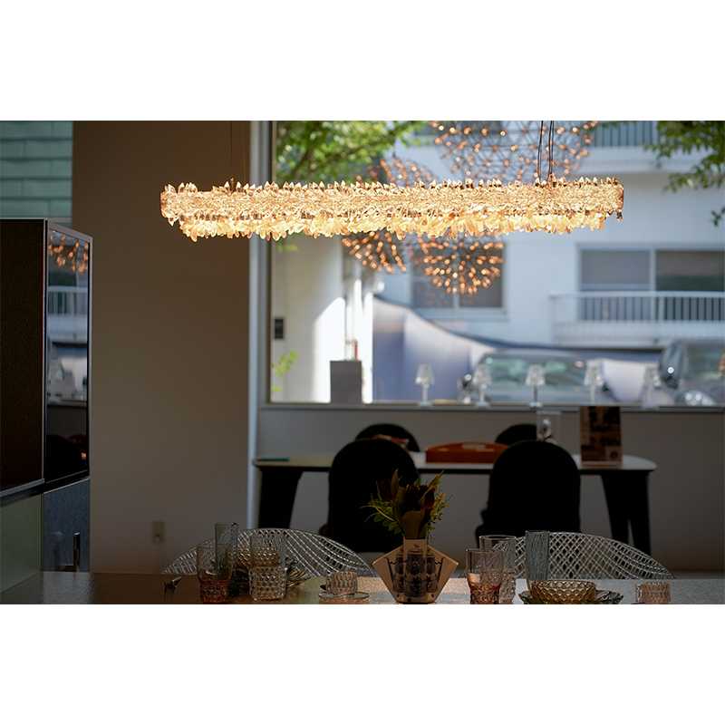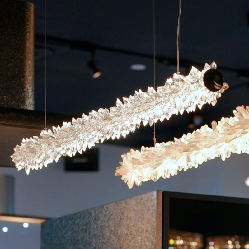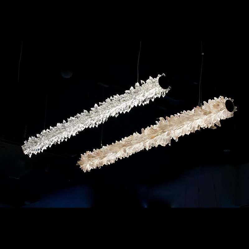 バータイプの光源をオーナメントが360度隙間なく覆います。オーナメントはクリスタイルガラスと天然の水晶の2つのタイプからお選びいただけます。
