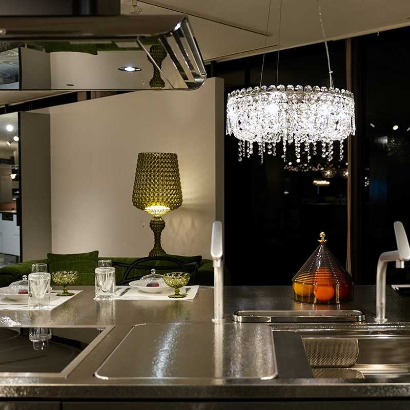 アイランドキッチンやダイニング等さまざまな場所で優雅な輝きを放ち、空間全体に上品な印象を与えます。