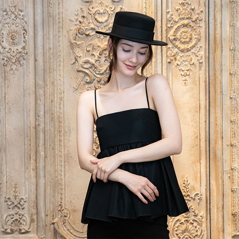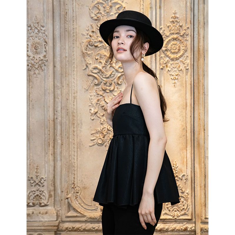 ハリ感のある生地が全方位美しいペプラムのシルエットを表現します。
