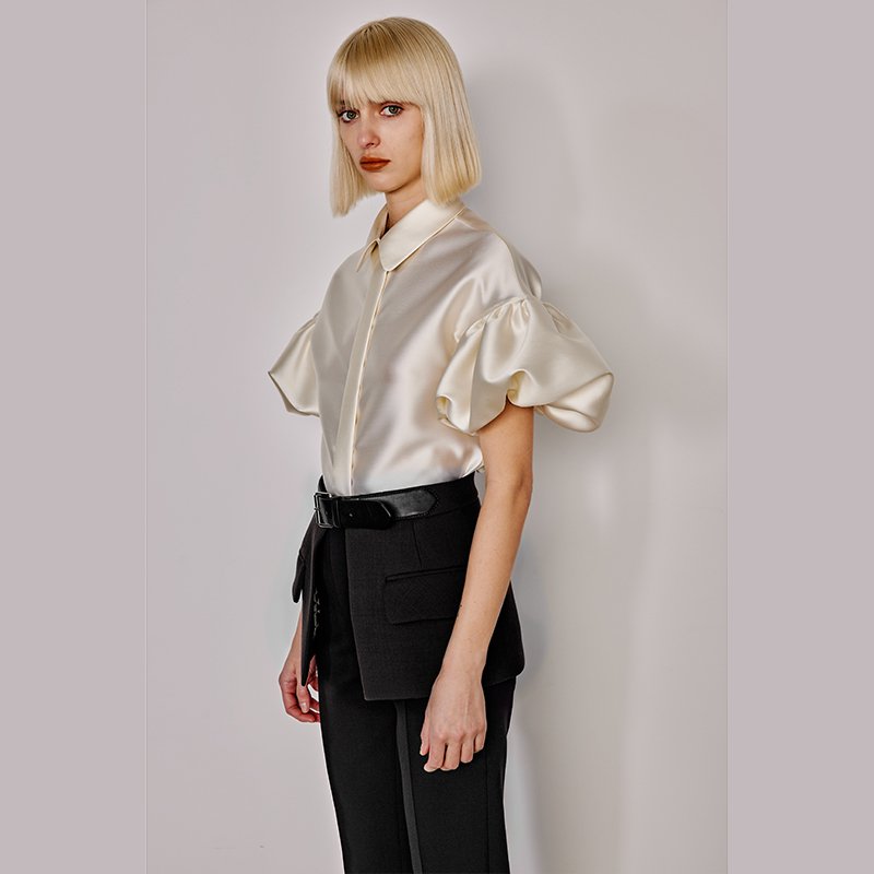 その作品は極めてユニークであり期待される既存のファッション概念を超越したものです。それこそがその時代を先んじてブランドとなる由縁です。洗練とコントラストの融合、ユニークなシルエット、現代的な手法で作られた1点づつの作品こそがDICE KAYEKなのです。