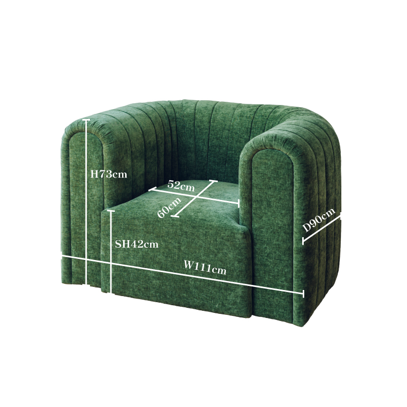 囲まれるような背もたれと肘掛けで、全体のスクエアなアウトラインを生み出しています。