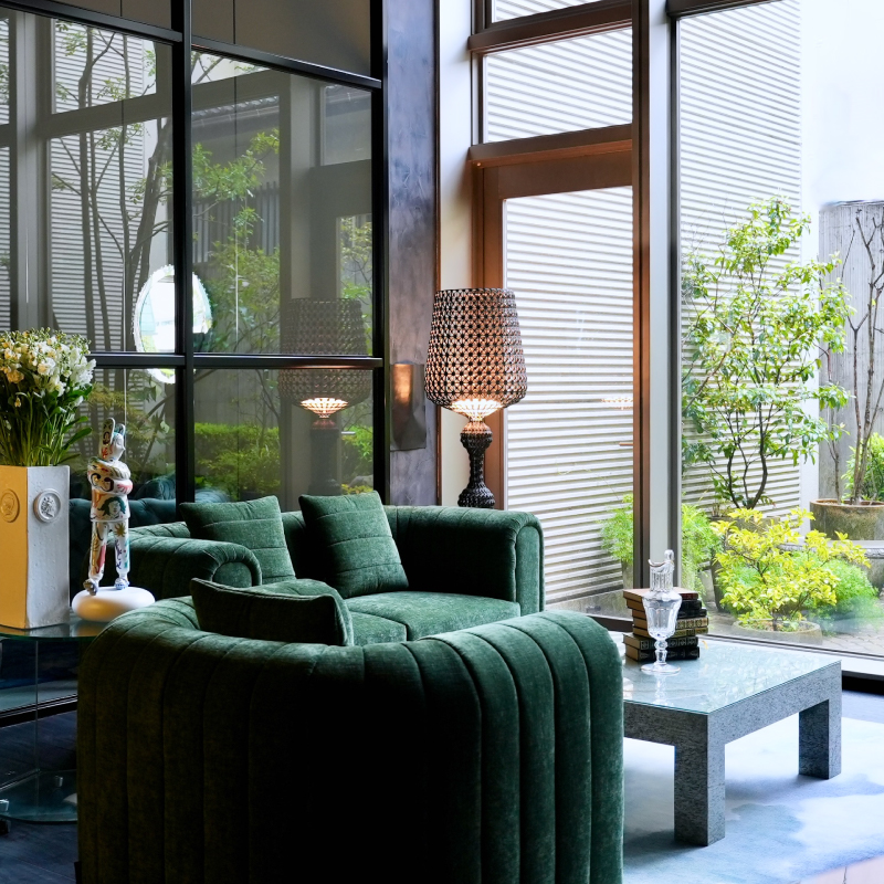 自由なレイアウトで空間をつなぎ、集ソファを中心にひとが集います。
