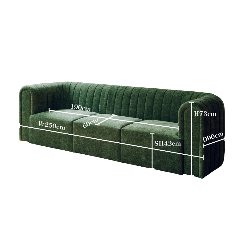 肘掛けが背もたれと同じデザインなので、3シーター、2シーターでは横向きに足を伸ばしてリラックスできます。