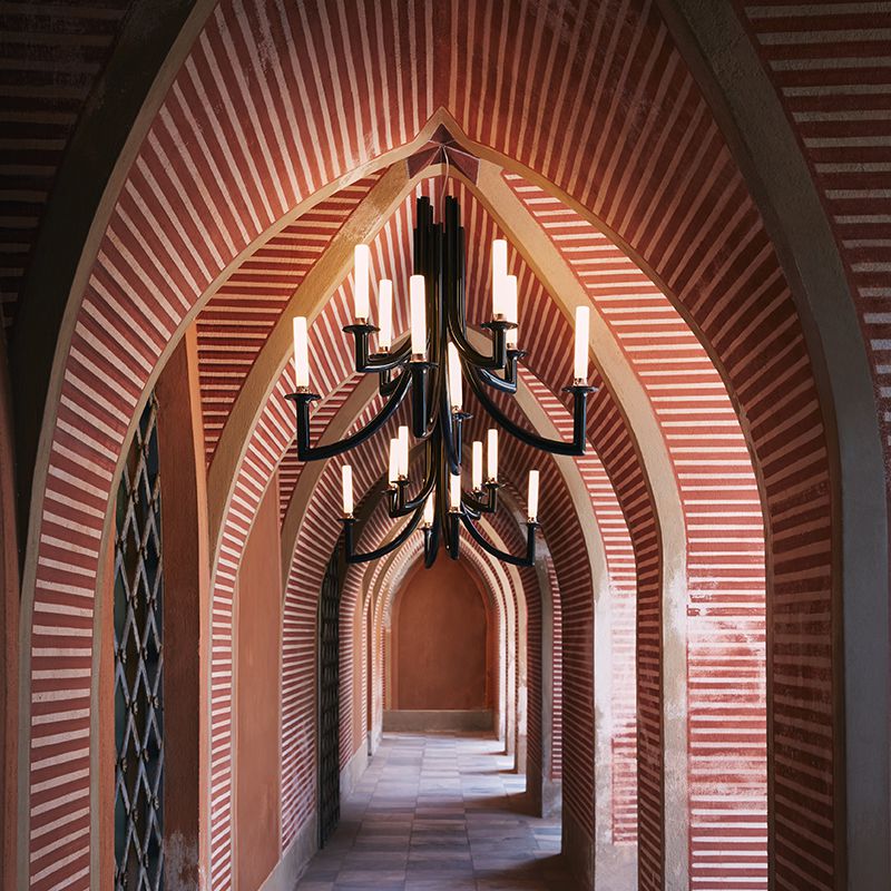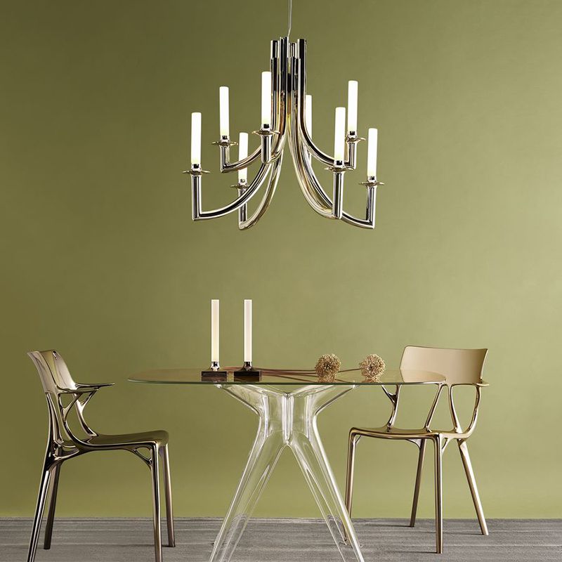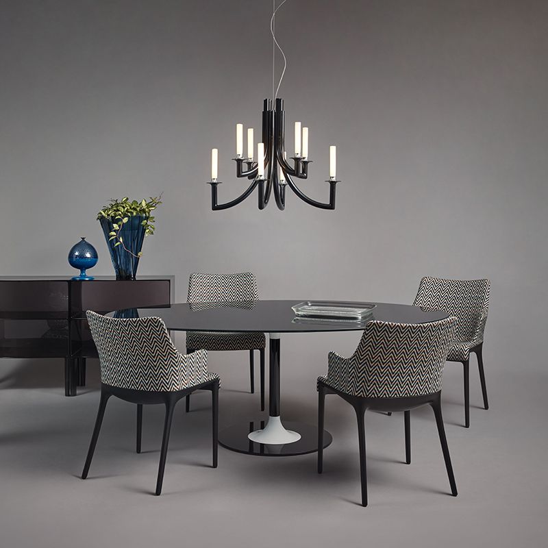 8本のアームからなるシャンデリアらしいスタイルでありながら、装飾的な要素を削ぎ落としシンプルでスリムなデザインです。