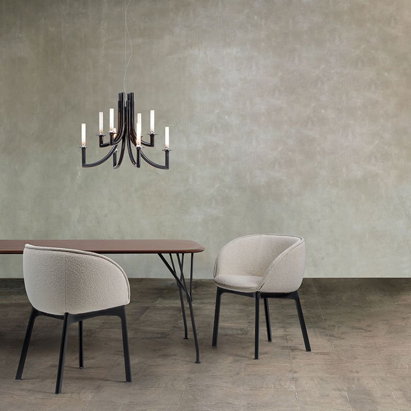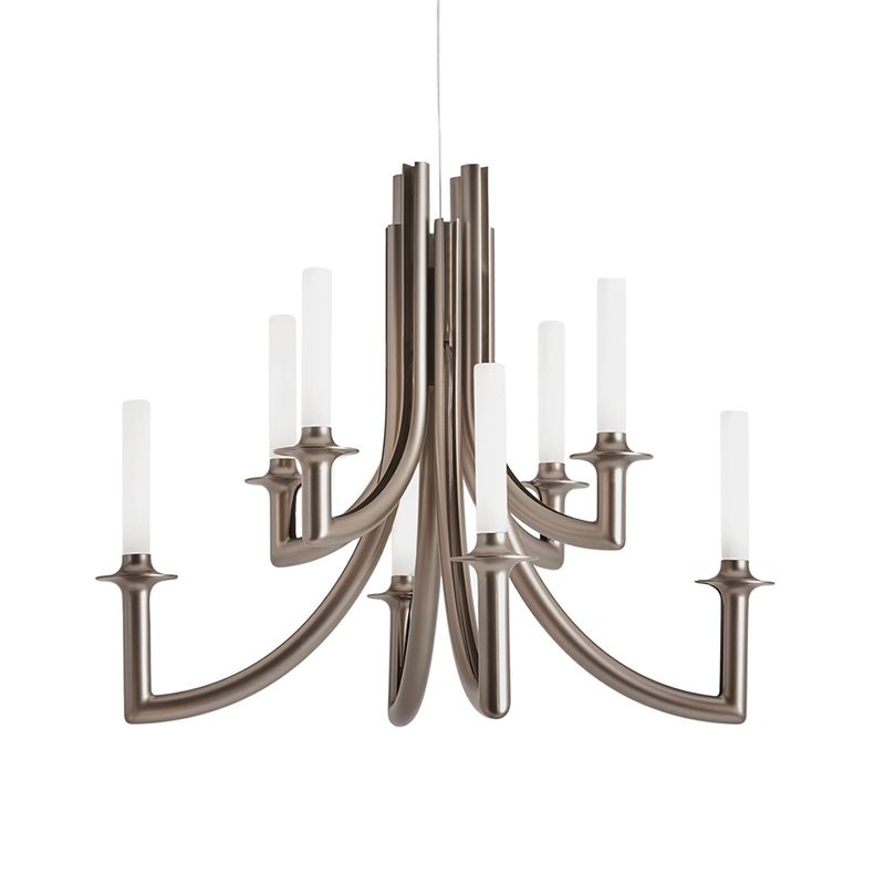 8本のアームからなるシャンデリアらしいスタイルでありながら、装飾的な要素を削ぎ落としシンプルでスリムなデザインです。