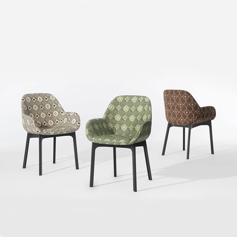 ルーク・エドワード・ホールがデザインした「ルベリ・クアットレフォイル|Rubelli Quatrefoil®」ファブリックは、カーペットのデザインにインスパイアされた幾何学的な模様が連なったオリジナル柄により、パトリシア・ウルキオラのクラップに思いがけず新しい仕上がりをもたらしました。
