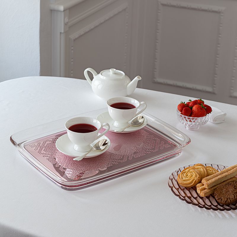 ティータイムは、古き良き時代を思わせる刺繍のような加工を施したフィリップ・スタルクデザインのエレガントなトレイです。