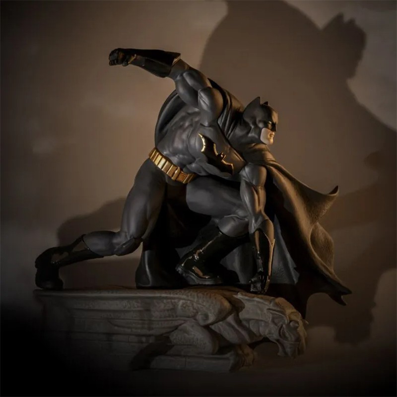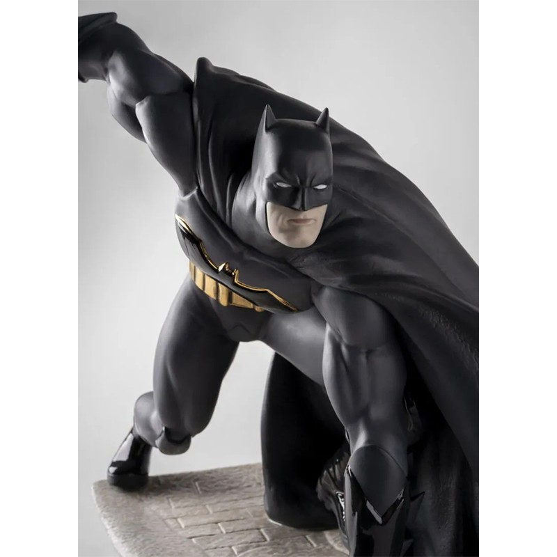 精度の高い彫刻技術で造形されたマットな黒磁のバットマンは、ディテールまで忠実に再現され、艶出しやゴールドタッチなどの装飾、そしてグレーのヘアラインなどを施しています。