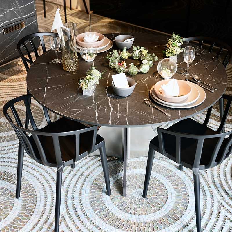 トーヨーキッチンスタイルのオリジナルテーブル「オリガミ|ORIGAMI」に大理石調のトップが新しく追加になりました。