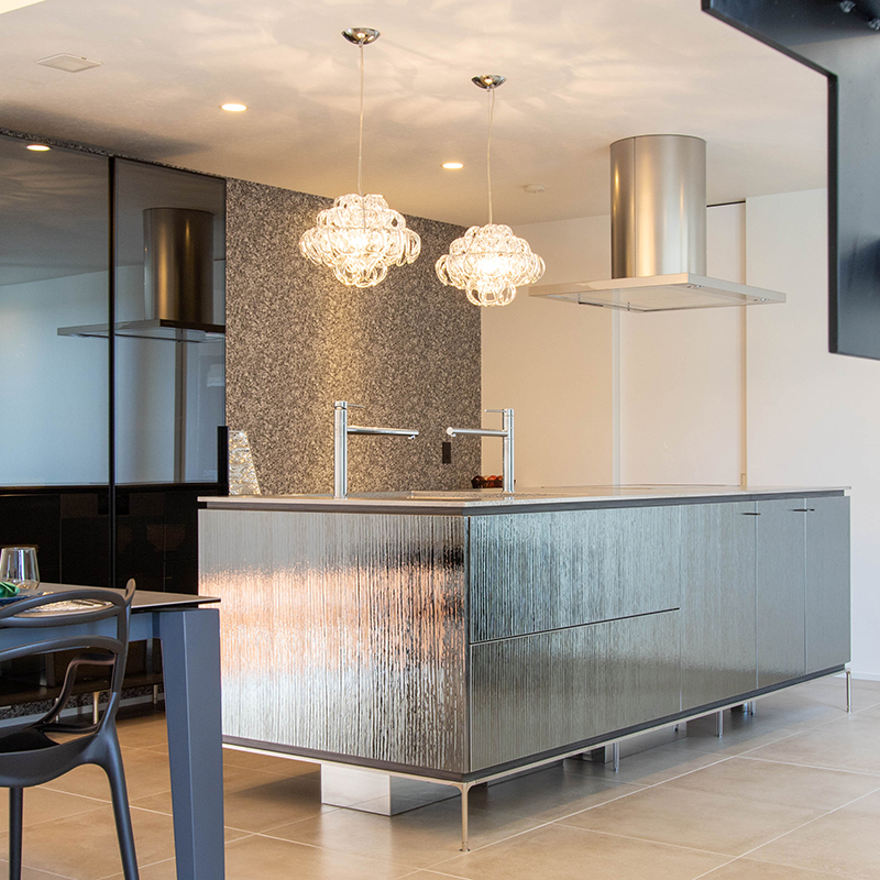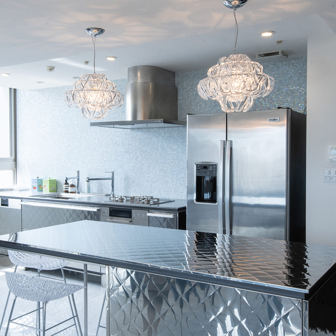 「同じ形状のガラスパーツを組み合わせる」という合理的なシステムにより、ハンドメイドながら安定した品質を実現。メンテナンス性にも優れています。