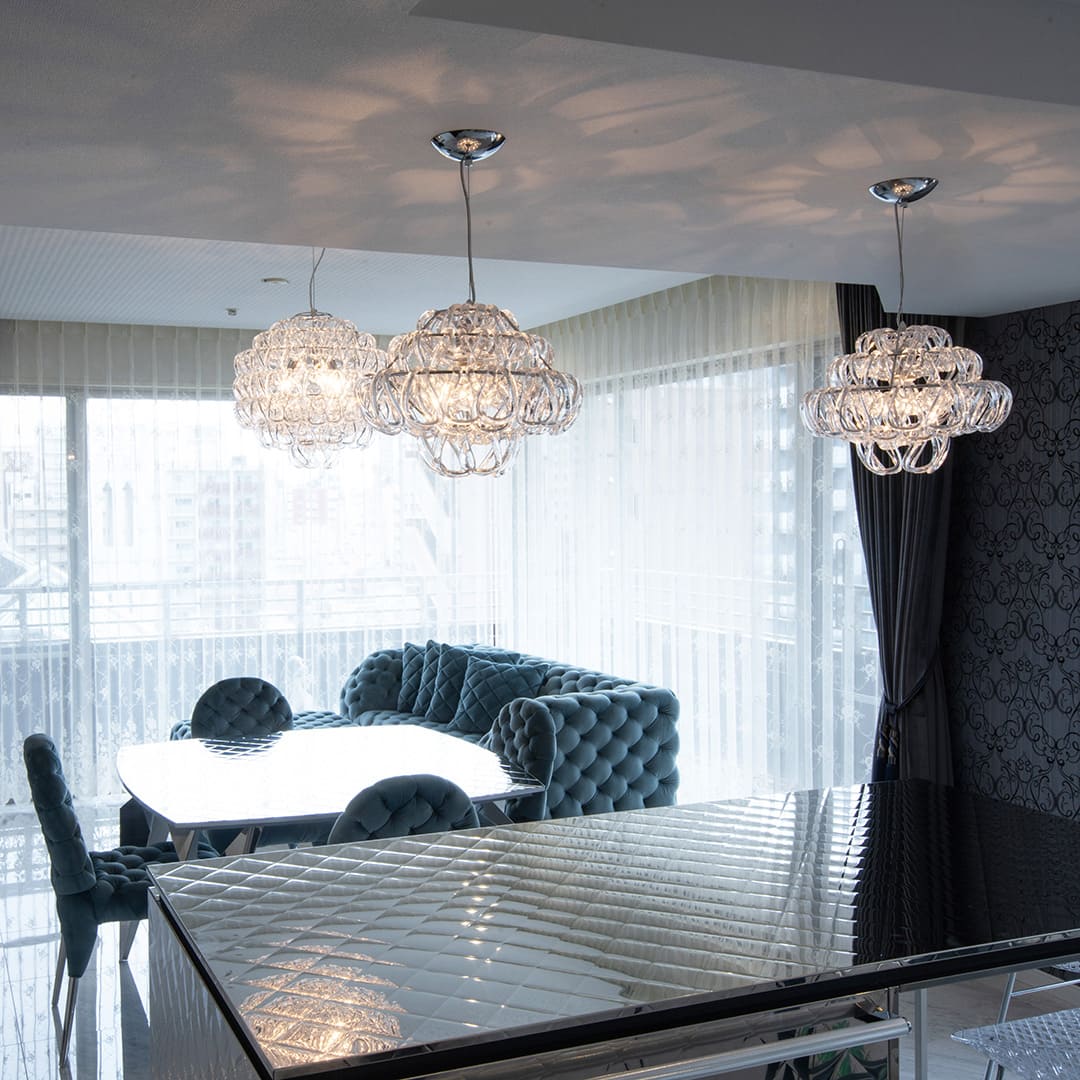 360度どこから見ても美しい、ガラスと光だけのシャンデリア