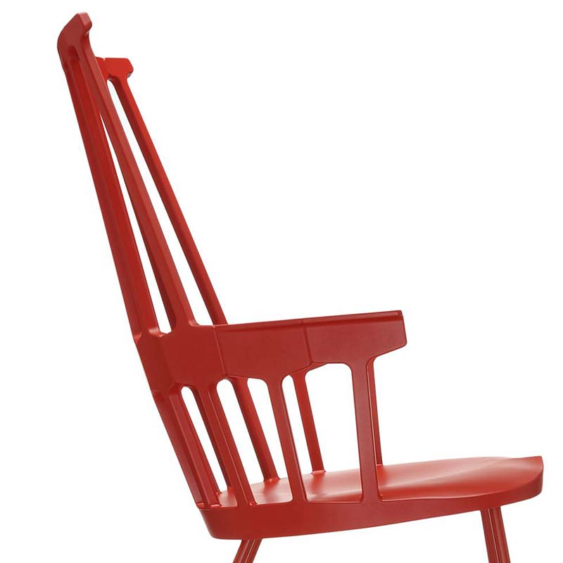ウィンザーチェアとして知られる英国クラシックスタイルのデザインが、先端の樹脂成型技術を使ったニュールックの椅子として現代にカムバック。櫛状の背部(COMB BACK)の支柱と繋がる、六角形の補強リムが腰にフィットし、人間工学的にもおさまりのよいサイズ感の椅子に生まれ変わりました。