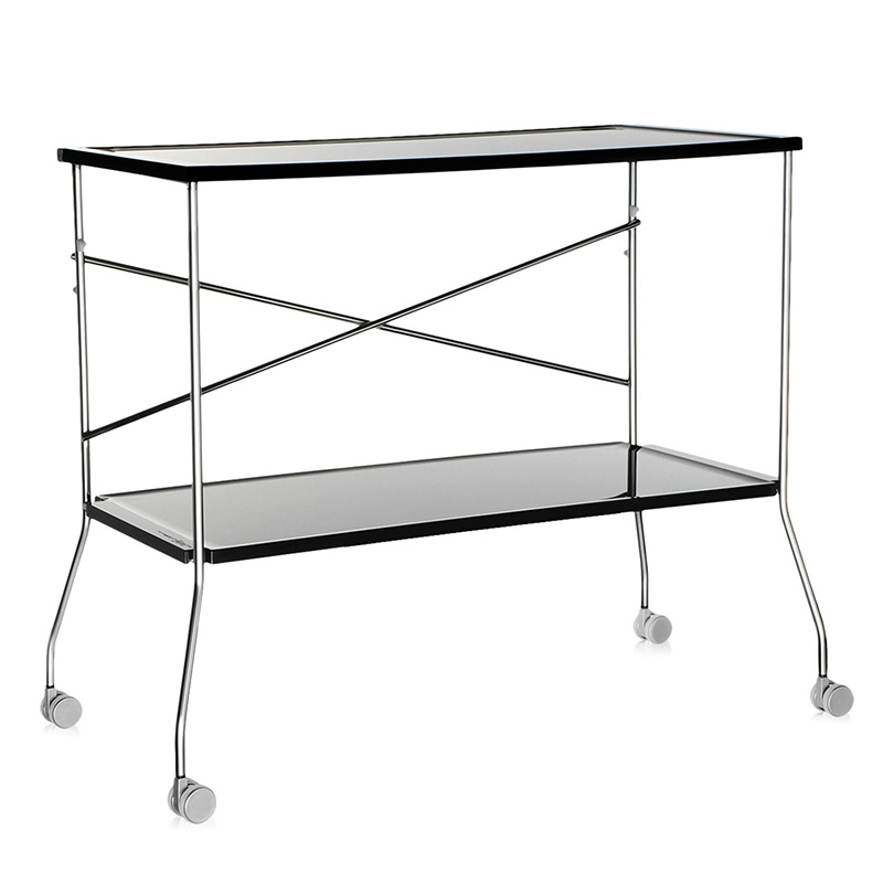 Kartellのコレクションに新しい折りたたみワゴンが仲間入りしました。PMMA樹脂製のトレイと金属のフレームの見事なコンビネーションをシンプルで洗練されたデザインで仕上げました。例えば前菜やビュッフェを運ぶ為のワゴンとしても、トレイ部分を取り外して使えるコーヒーテーブルとしても、幅広く活躍します。折りたたんで小さく収納することもできます。
