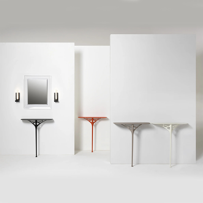 無駄を削ぎ落としたミニマルな美しさと構造的な強さを両立させた、革新的なコンソールテーブルです。