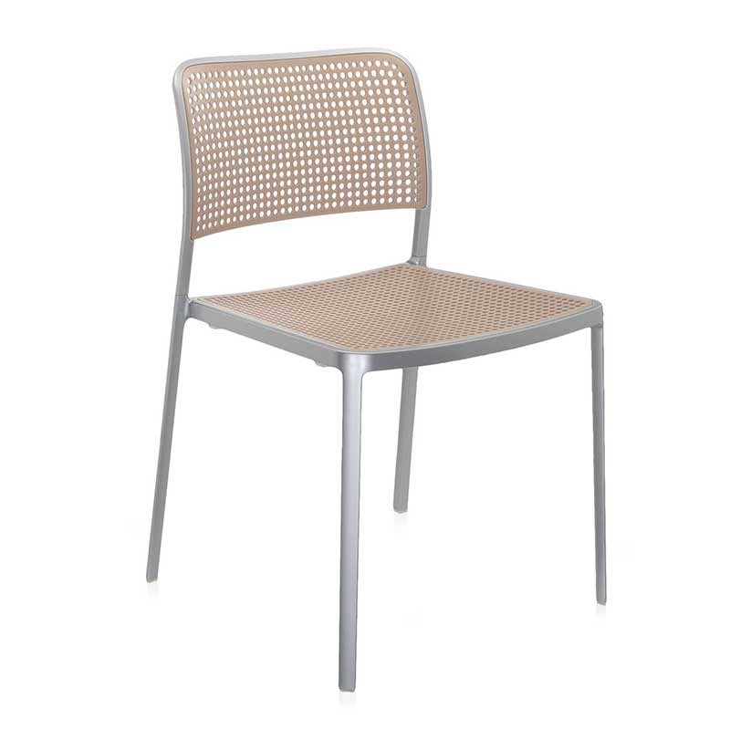 ピエロ・リッソーニのデザインによるオードリーは、アルミフレームとプラスティックシートのコンビネーションが特徴です。すっきりとシンプルで現代的なデザインなので、インドア、アウトドア、オフィスなどあらゆる用途に適用します。