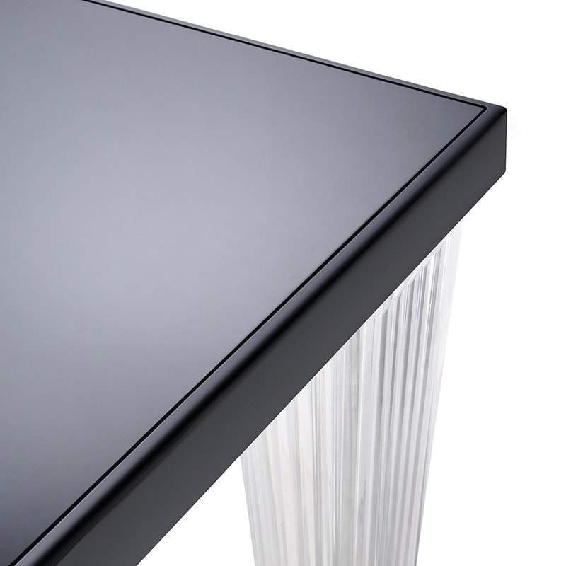 トップトップのダイニングテーブルは、グロッシーな面と透明な面を組み合わせたオリジナリティ溢れるテーブル。