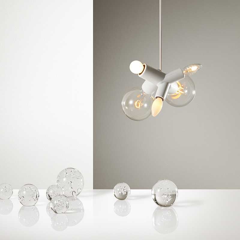 大きな電球、小さな電球、色付きガラス、すりガラス、丸い電球、炎の電球、管状の電球など、5つの光源を組み合わせて、空間にぴったりのスタイルをデザインできます。