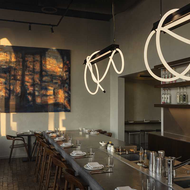 光のチューブが放つ柔らかな輝きは、空間に自然に馴染みながら心地よい雰囲気を作り出します。