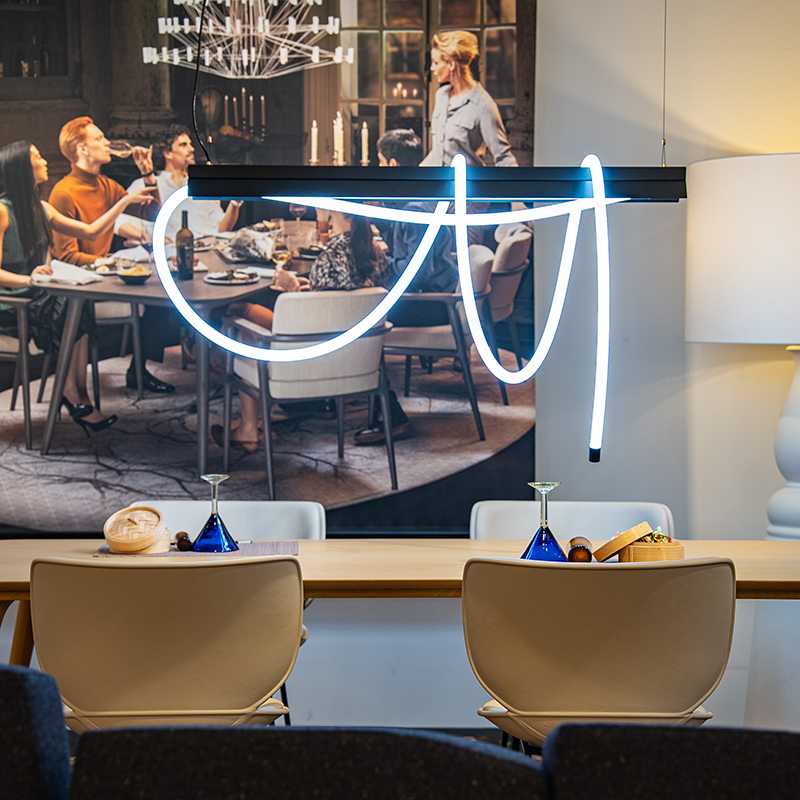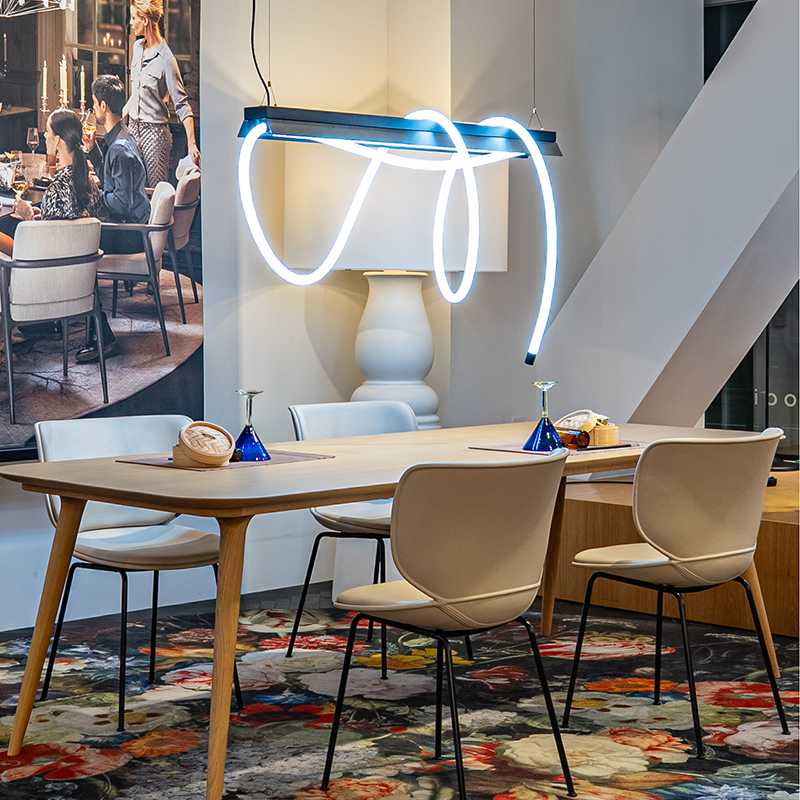 moooiのチューブライトは、従来の直線的な蛍光灯の概念を覆し、しなやかに形を変えられるデザインへと進化させました。