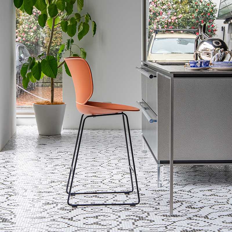 ハナバースツールは、ハナチェアの美しいデザインと快適性を継承しながら、カウンターやバースペースに最適なフォルムへと進化したスツール。