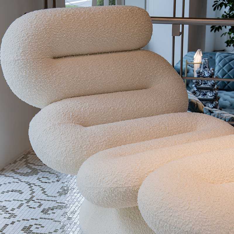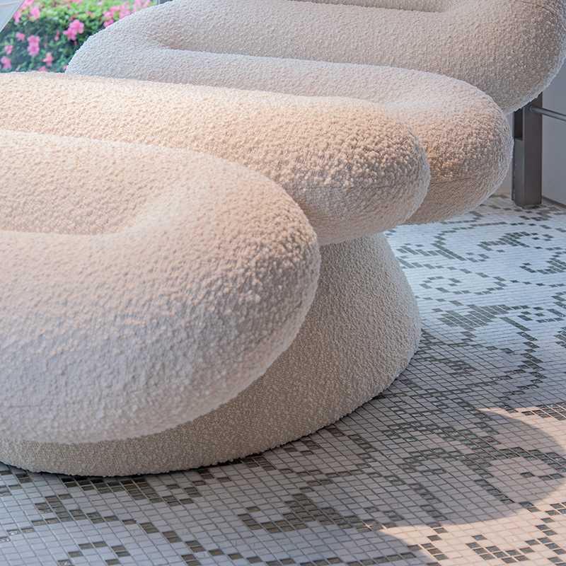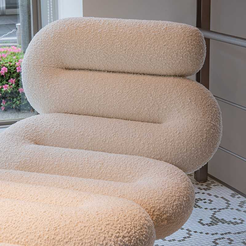 厚みがありふかふかのチューブ型のシートはリッチなブークレ生地で包まれて身体にフィットするようにデザインされています。