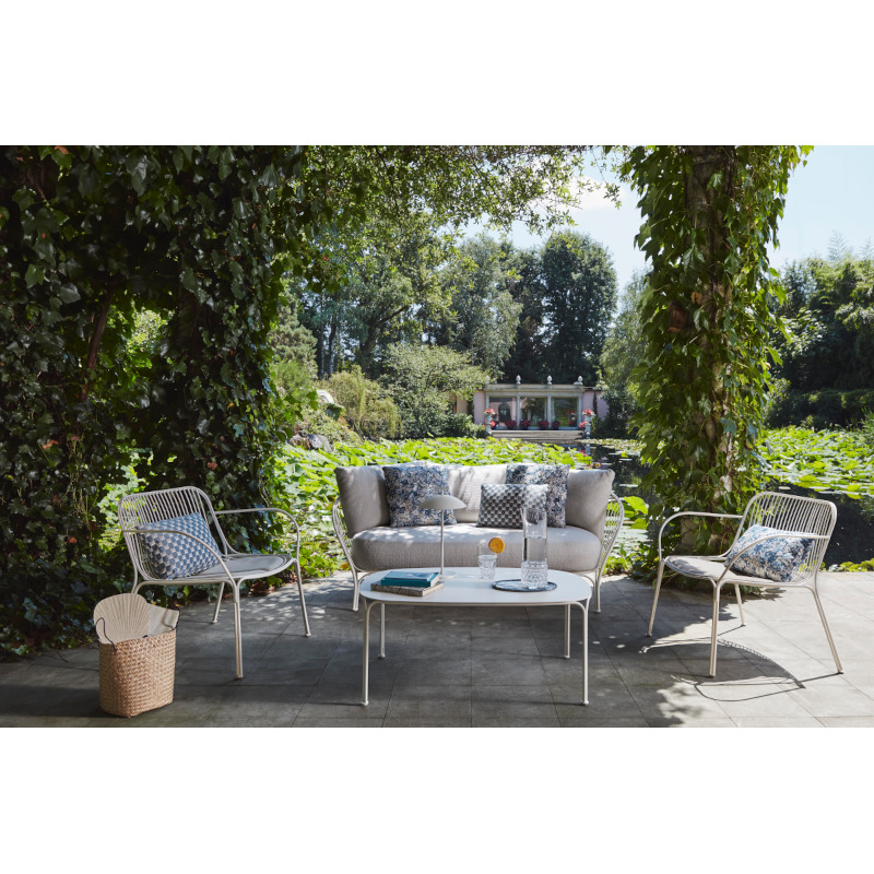 屋外で居心地の良い空間を提供するシリーズ「ハイレイ|Hiray」にゆったりとしたプロポーションのソファが加わりました。つい長居してしまいそうなほど快適な座り心地です。