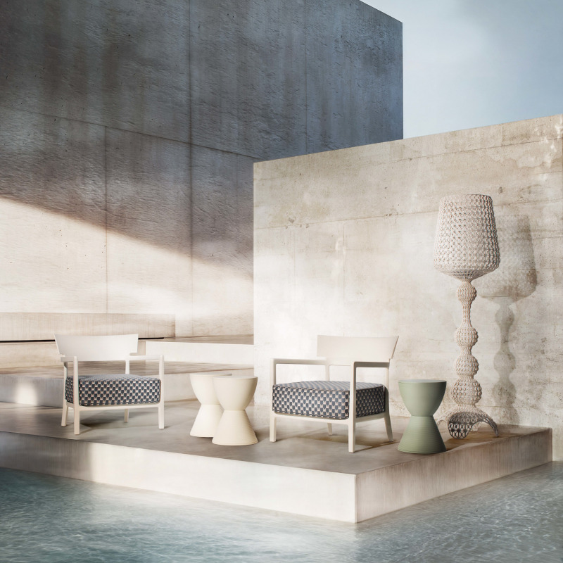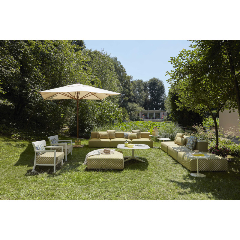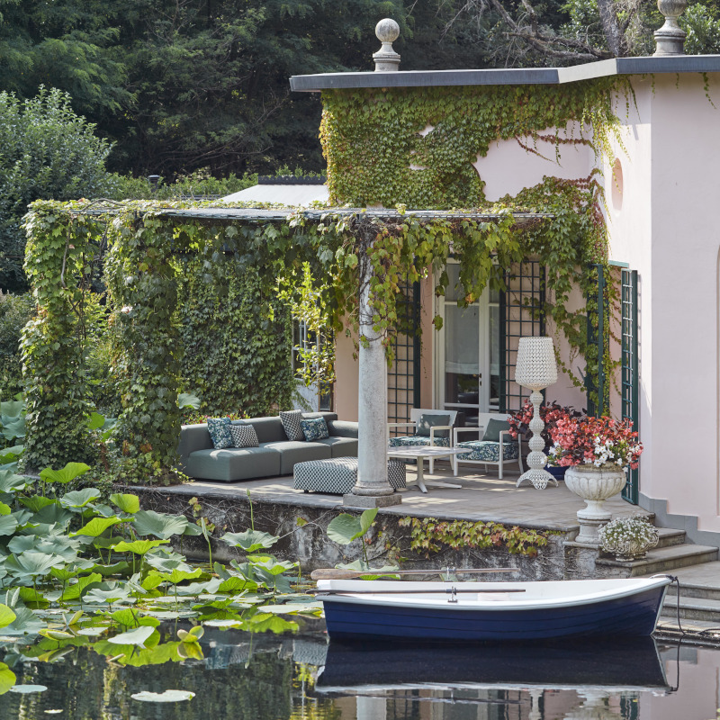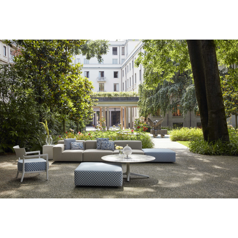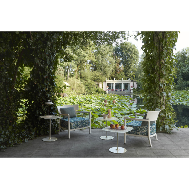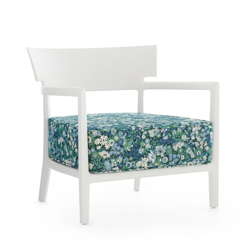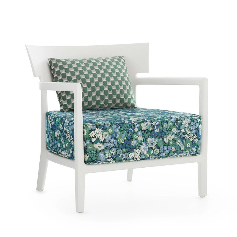 屋外で本格的なリビングスタイル空間を提供するアームチェア「カーラマットアウトドア|Cara Mat Outdoor」に世界中で注目される英国テキスタイルブランド「リバティ|Liberty」のファブリックが登場。