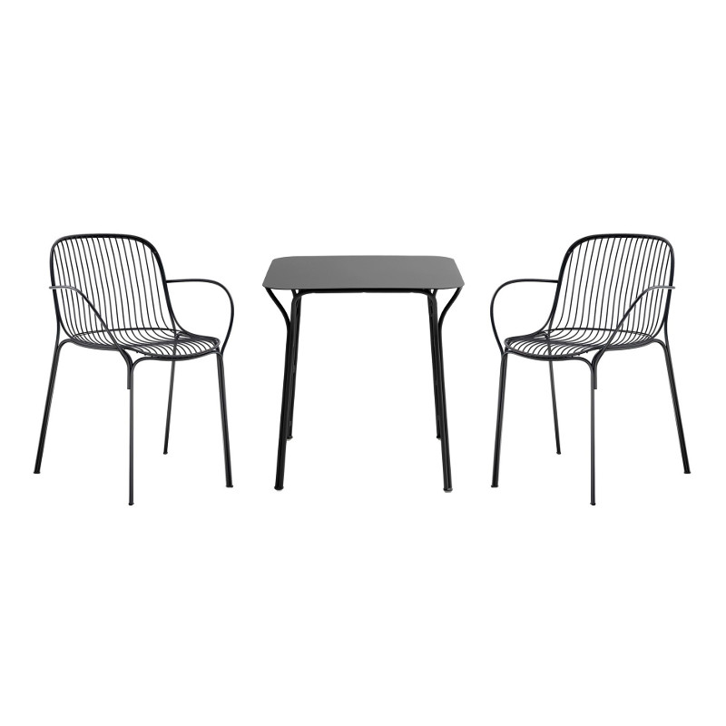 ハイレイシリーズにはチェア、アームチェア、ビストロに最適なテーブル、ロースタイルのアームチェア、ソファ、コーヒーテーブルなどの多くのバリエーションが揃っています。