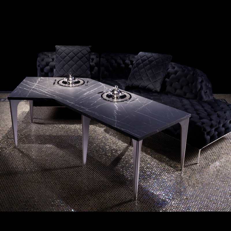 集(つどい)ダイニングテーブル135°コーナー(ブラックマーブルトップ+チタン脚)