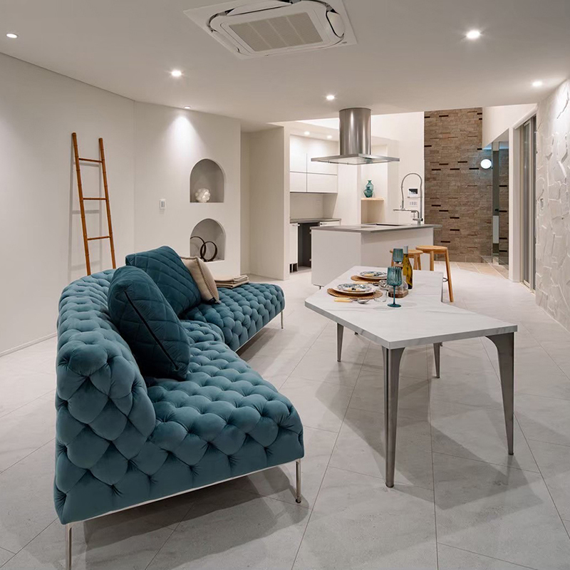高さを抑えることで空間に圧迫感を与えず、目線も遮らないため家族や友人と視線を交わしながら会話を楽しんだり、テレビや映画を観ながらゆったりと過ごすことができます。