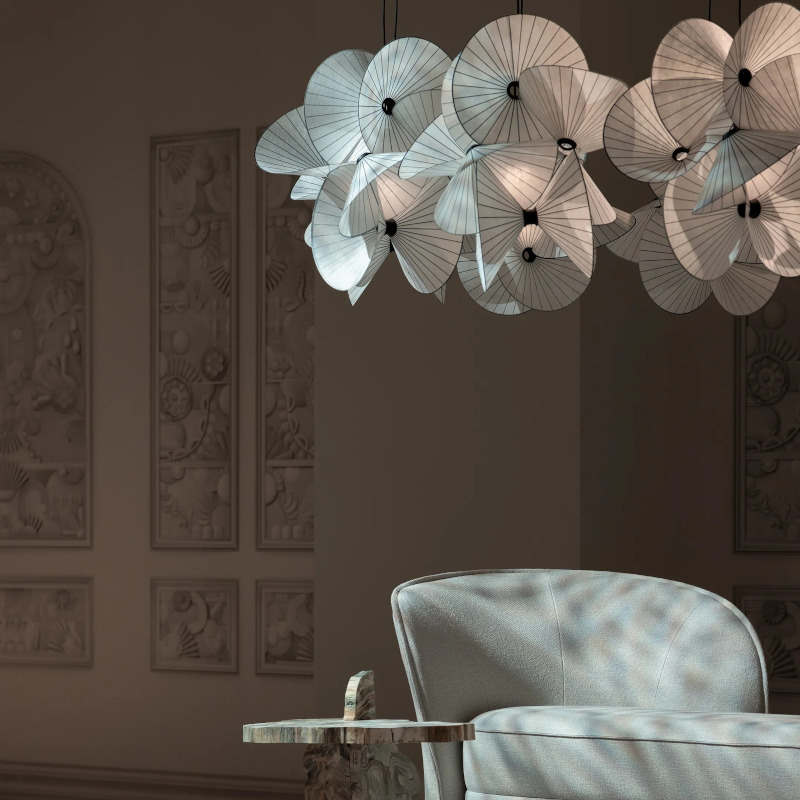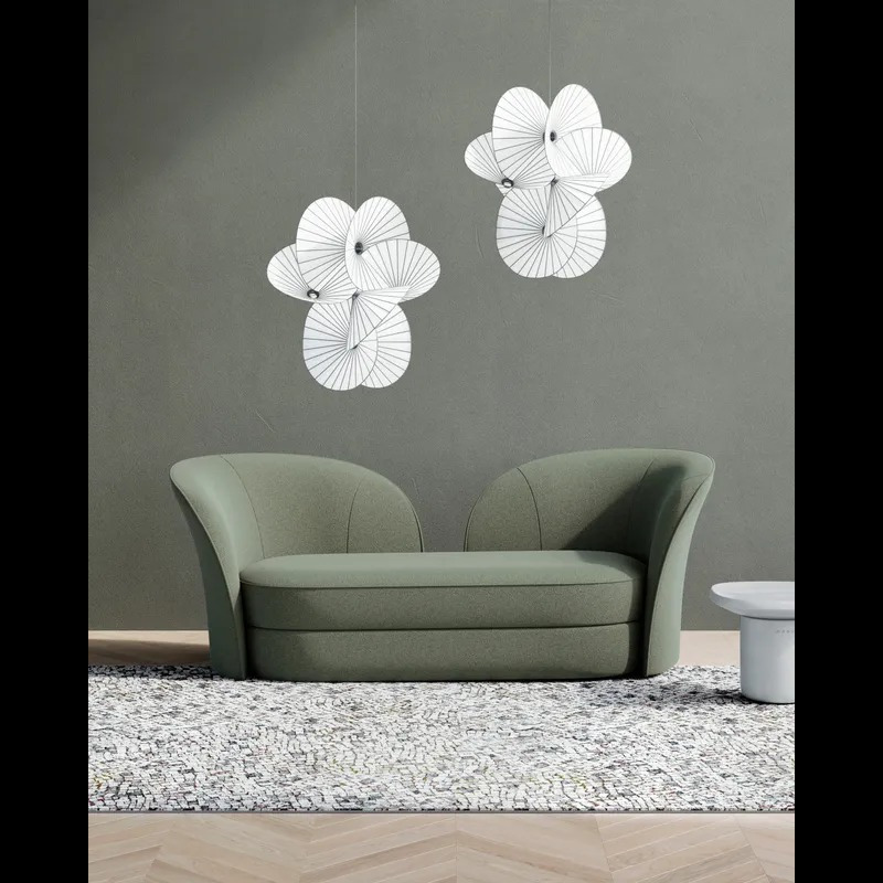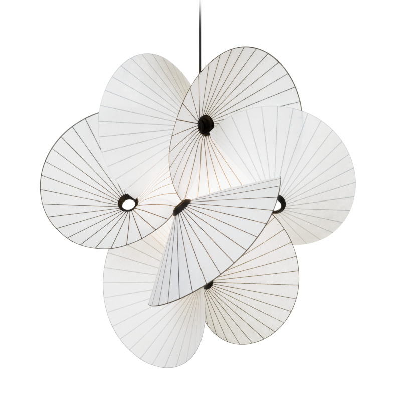 サーペンタインライトは紙のねじれや回転からインスパイアされた軽やかなデザインのサスペンションライトです。