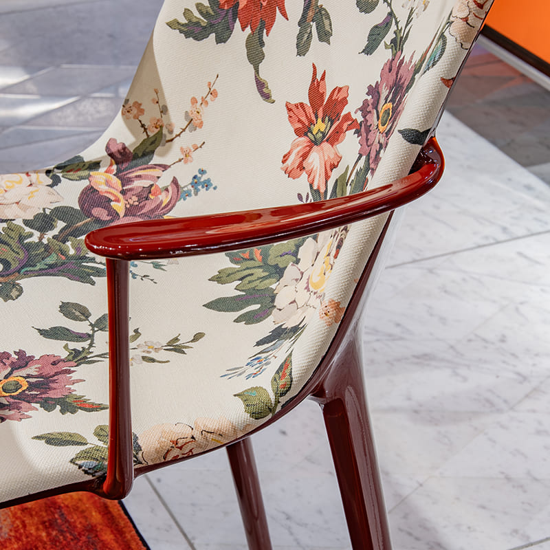 4. 先端技術による表現力の革新 Kartellが新たに導入した「グラフィックインプレッション」技術により、複雑な曲面にも高精度でパターン転写が可能に。 花柄や幾何学模様など、視覚的にも豊かな表現が可能となり、デザインの幅を広げています。