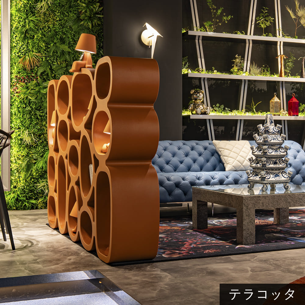 ステファノ・ジョヴァンノーニが手がけたキーブー|Qeeboo「コイブキブックケース|Koibuchi Bookcase」は、彫刻のような造形美と実用性を兼ね備えた自立型ブックケースです。