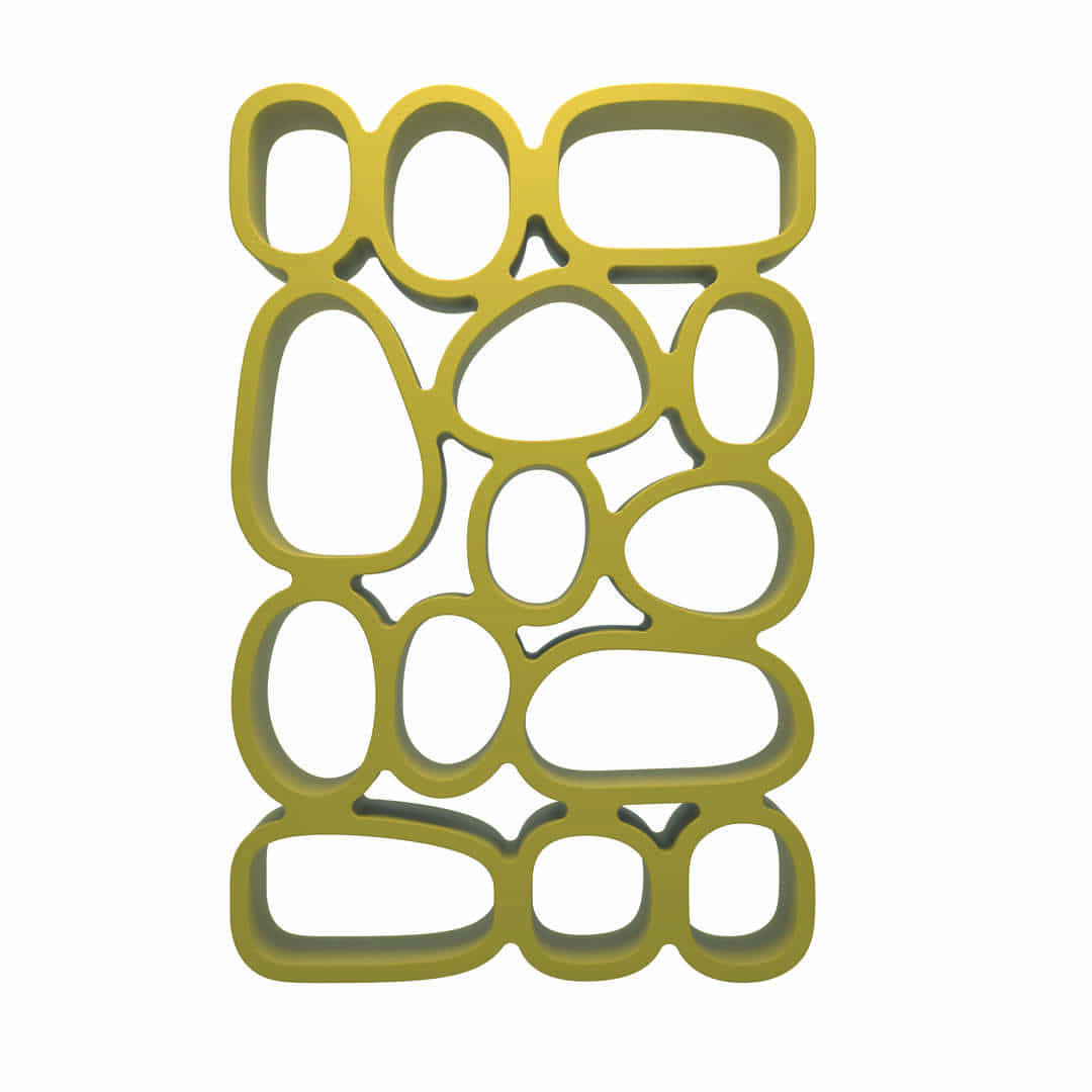 そのデザインは、穴の開いた石が積み重なった壁をイメージしており、連続する不規則な開口部が、まるで自然の造形のような印象を与えます。