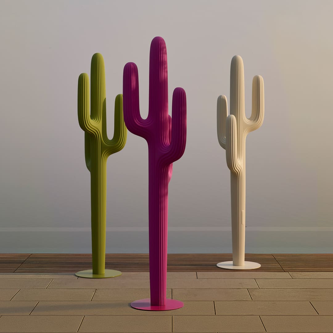 アメリカ・ソノラ砂漠に自生する柱状のサボテン「サグアロ」をモチーフにした、ユニークで存在感のあるコートハンガー。