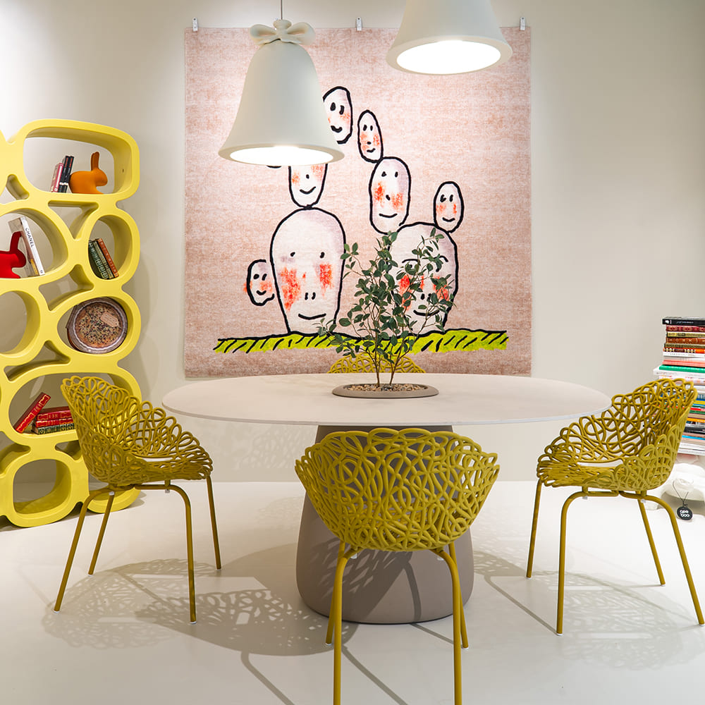 キーブーのコブル コレクションは、エリザ・ジョバンノーニが手がけたチェアとテーブルで構成される、室内・屋外兼用のダイニング家具シリーズです。