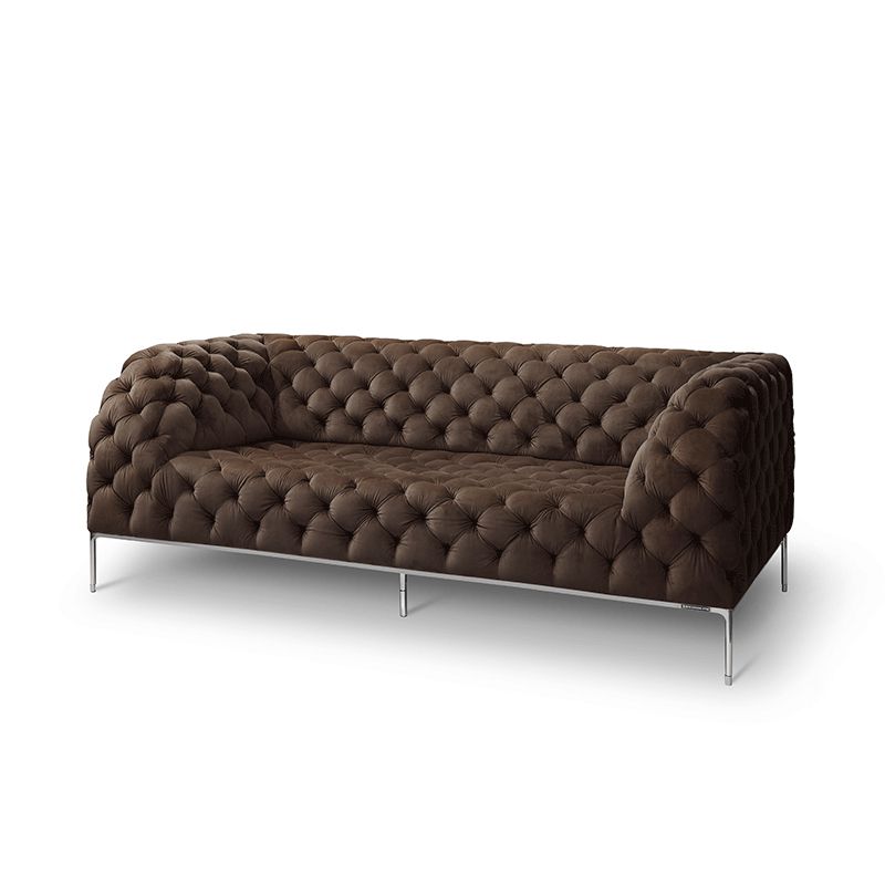 3シーターは家族でゆったり使える広さと、大人が横になれるサイズ感を確保しつつ、チェスターフィールド特有の張り出しを抑えたスマートな設計。