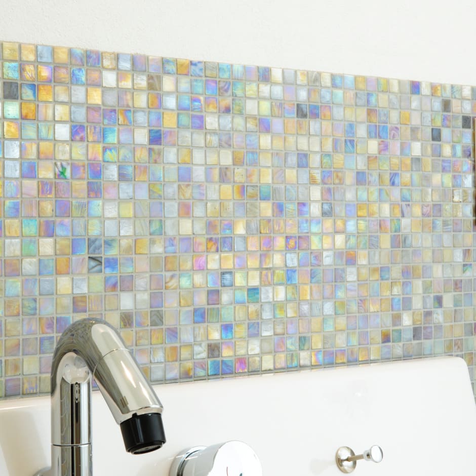 これらのヴェネチアンガラスモザイクは水を吸収しないため、腐食や変色の心配もなく、輝きがずっと続きます。