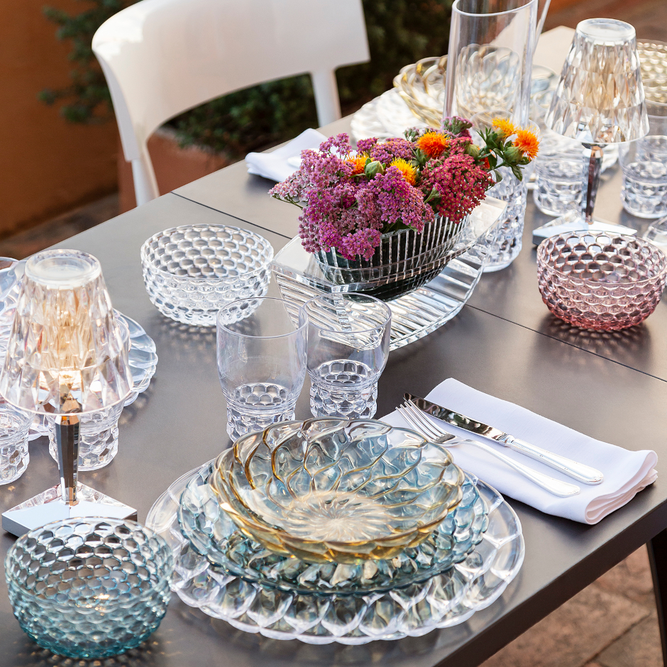 Kartellのテーブルウェアシリーズ「ジェリーズファミリー」は、ガラスのような透明感と、樹脂ならではの扱いやすさを兼ね備えた人気シリーズです。