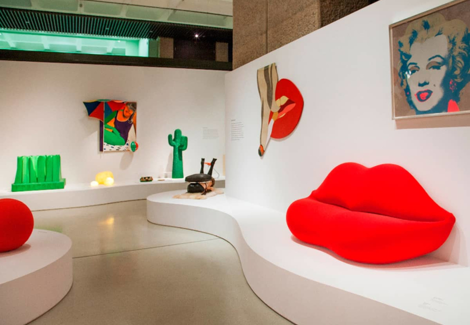 スタジオ65は、このダリの唇ソファに敬意を表しながらも、1960年代のポップアートの感性を注入しました。