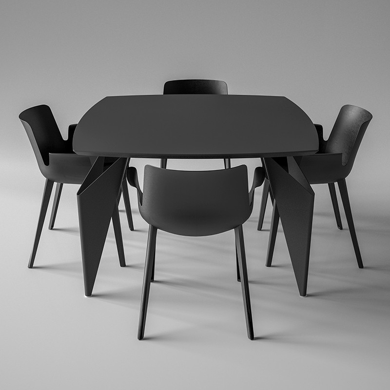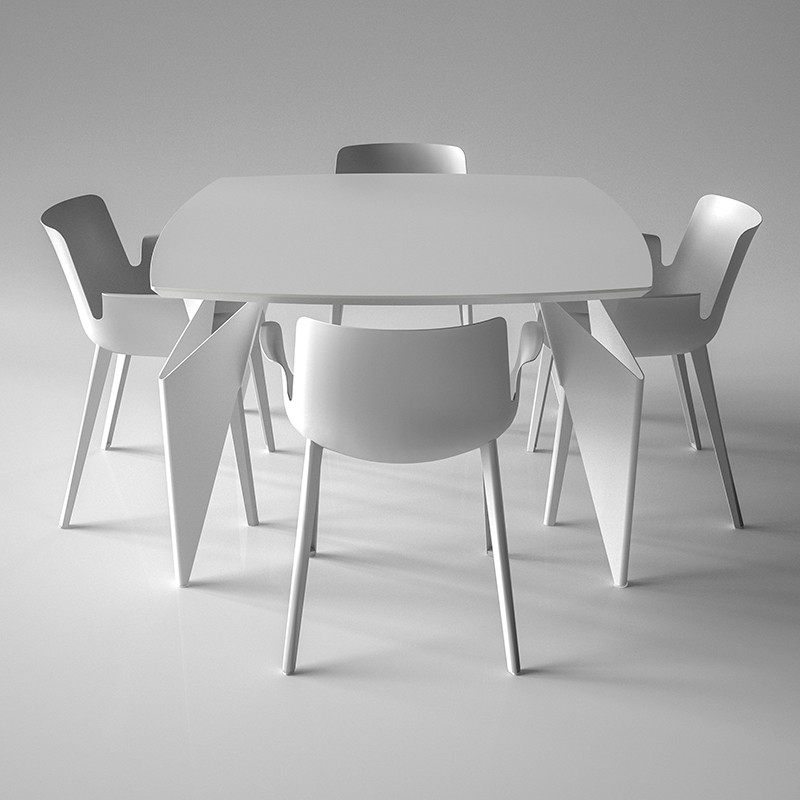 ダイニングテーブル「オリガミ」とKartell(カルテル)のダイニングチェア「ピウマ」4脚の5点セット。