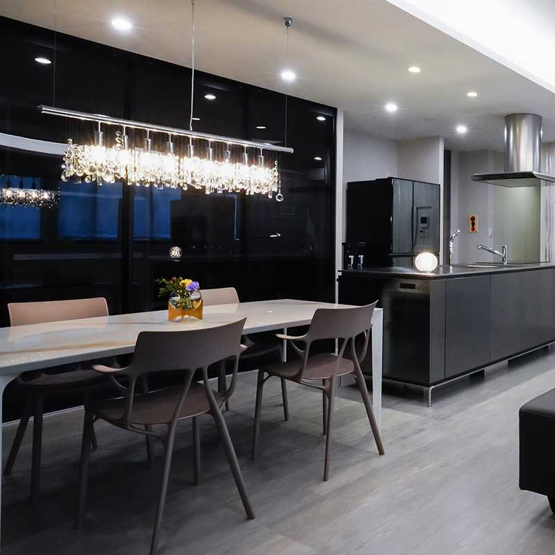 リビング全体や部屋の隅々まで均一に照らすことを目的とするのではなく、その美しい輝きで生活を豊かにするために、ダウンライトなどの補助照明と組み合わせて使うことをおすすめします。