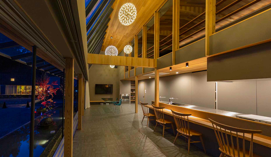 内外どこから見ても美しい照明空間を形成。