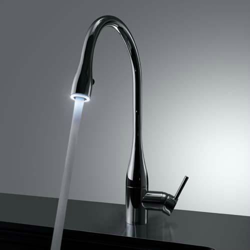 吐水口に組み込まれたLED照明によって、キッチン空間を美しく演出。