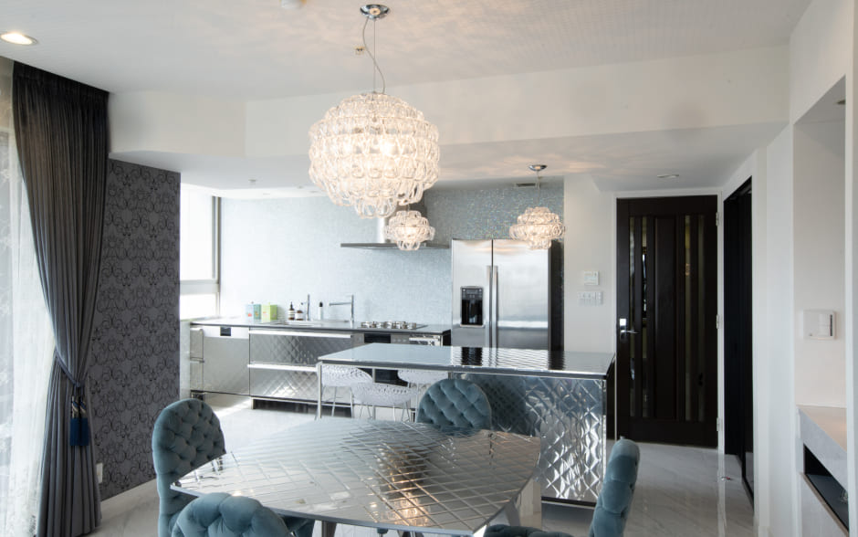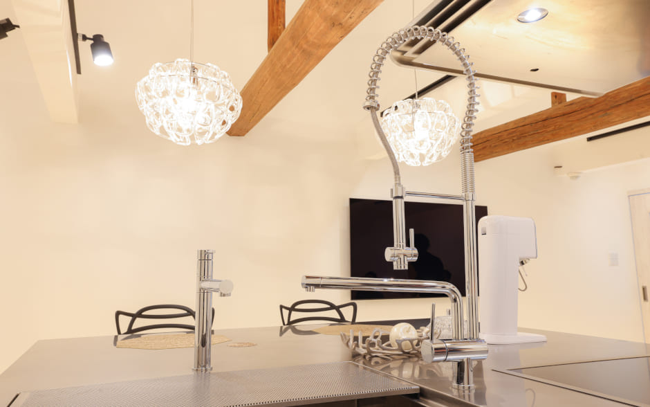 光はガラスの曲線を伝い、柔らかく拡散しながら空間に陰影を生み出します。